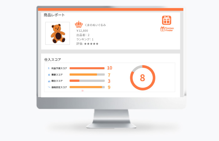 TremasFinderは、最大3,000の商品を自動スコアリング。 手作業でグラフを確認する際に起こる”見方のムラ”をなくし、 全体で「売れやすい商品」「安定して利益が出る商品」を 簡単に客観的に比較できるようになります。