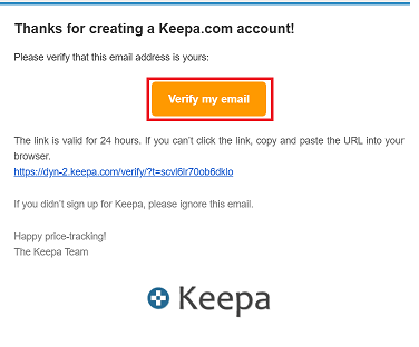 4. 「Please confirm your email – Welcome to Keepa」というメールからメールアドレス認証