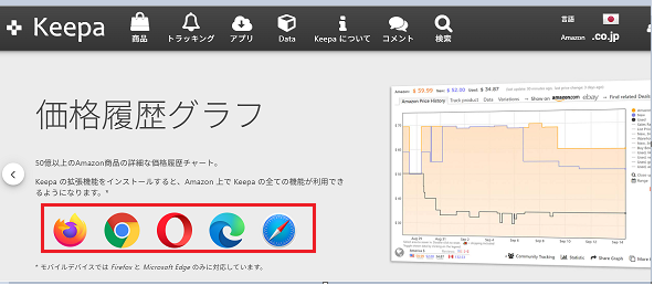 2.「価格履歴グラフ」でご利用のブラウザを選択