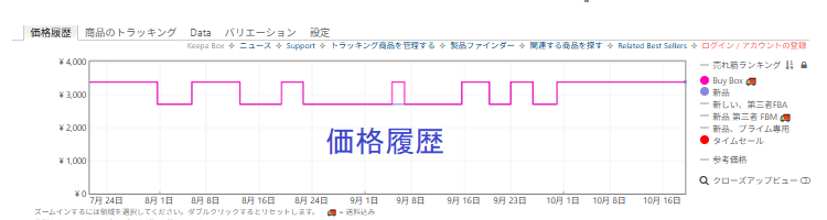 Keepaを使えば、ランキング推移・出品者数・価格変動の履歴などから、