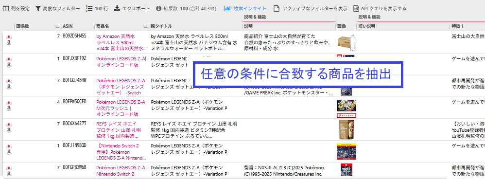Keepaのサイトで、50億件以上の商品(Keepa公式より)の中から条件に合う商品を出力します。