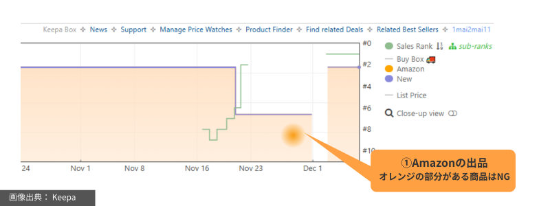 仕入れ判断で最も注意すべきポイントの一つが、Amazon本体が出品しているかどうかです。